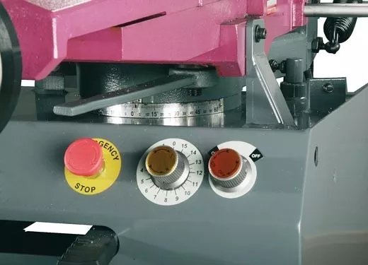 - Cenově výhodná pásová pila na kov s optimálním řezným výkonem je díky snadné obsluze, hydraulickému a chladicímu zařízení vhodná i pro náročnější kutily, kteří nepotřebují oboustranné úhlování ramena. Rychlost plynulého klesání ramene pily lze korigovat za pomocí ventilu na hydraulickém válci, který lze i snadno odstranit. Řeznou rychlost pilového pásu lze manuálně nastavit na požadovanou polohu klínového řemene na řemenici, která pak následně přenáší pohyb přes šnekovou převodovku v olejové lázni na pásovici s pilovým pásem. Chladící systém je zabudovaný ve stabilním mobilním podstavci. Volba rychlosti padání ramene, k tomu optimální řezná rychlost a chlazeníkapalinou v místě řezu, prodlužují životnost pilového pásu až na trojnásobek. Koncový vypínač zastavuje pilový pás po ukončení řezu u tohoto modelu automaticky. Řez pod úhlem 0-45° se provádí nastavením pevné čelisti svěrákudle stupnice umístěné na základně. Součásti dodávky pásové pily na kov PPK-115HC/230:• Pilový pás