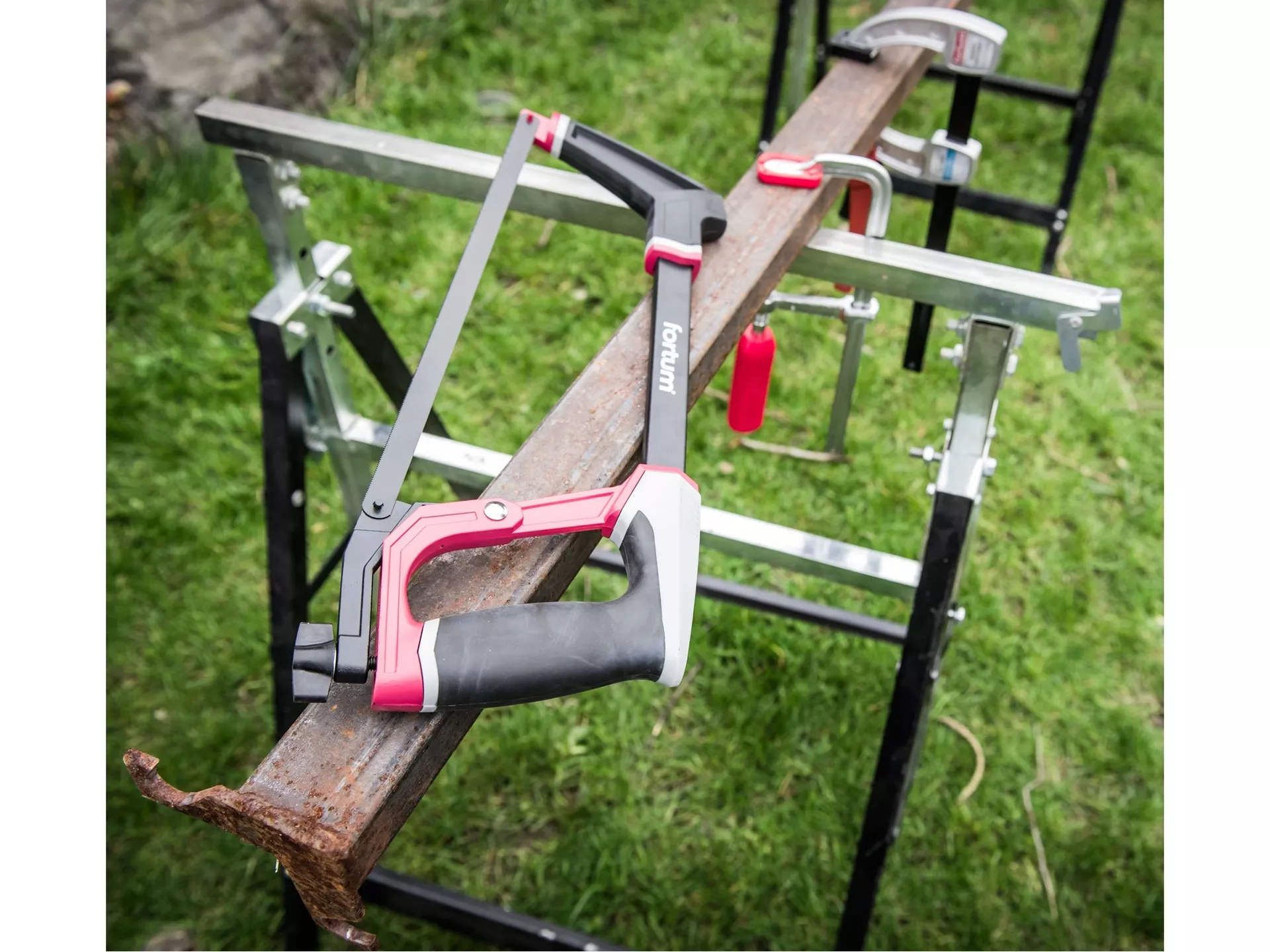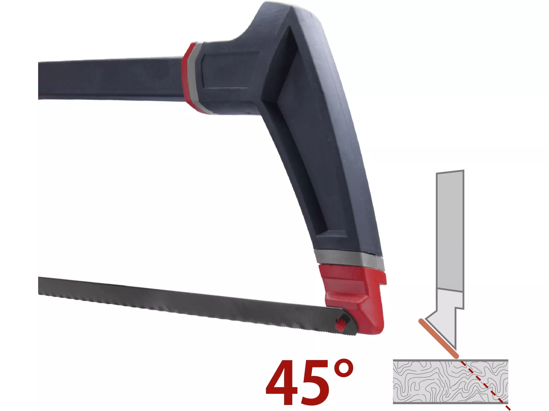 - Doplňující parametr: kovový rám pilky s rukojetí z ABS plastu potaženou TPR pryží, hliníkový kosořez 135x47x23mm s úhly řezu 45°a 90°
