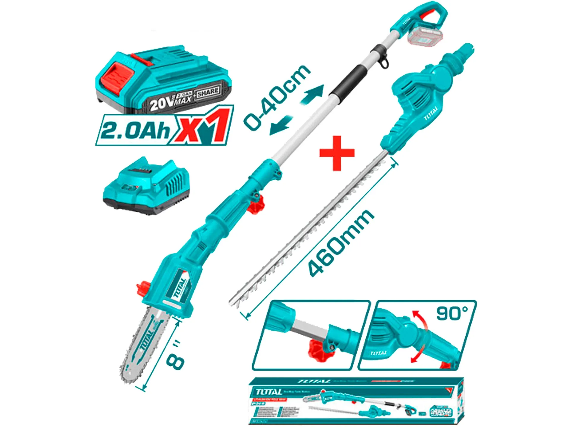 Pila na větve a nůžky na živé ploty, aku, 20v li-ion, 1x baterie, 1x nabíječka TOTAL TPTS201681