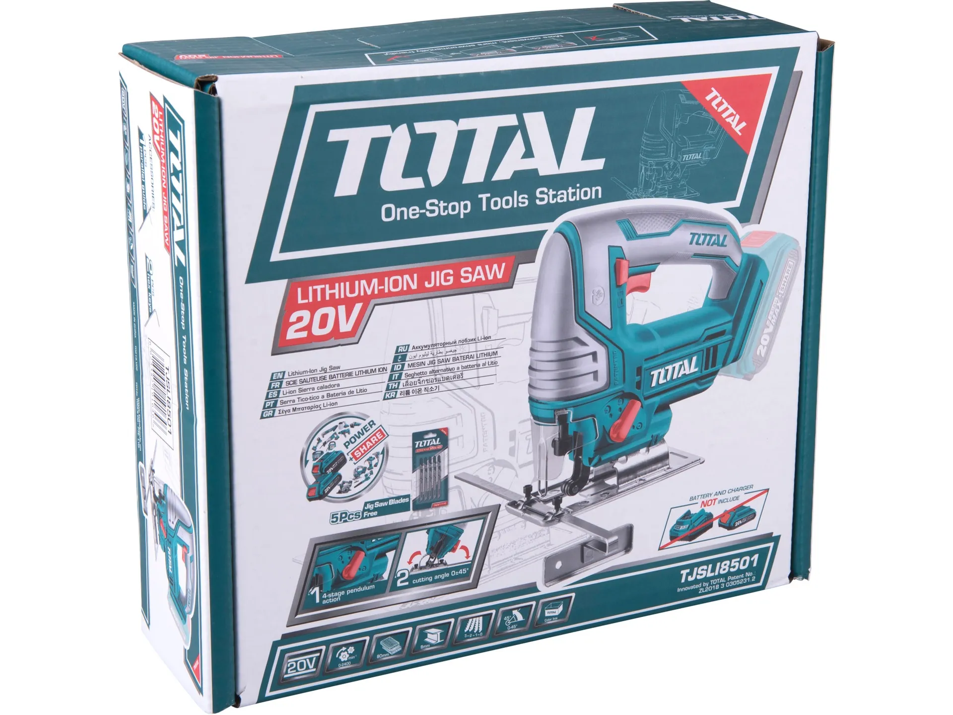 Pila přímočará aku, 20v li-ion, 2000mah, bez baterie a nabíječky TOTAL TJSLI8501
