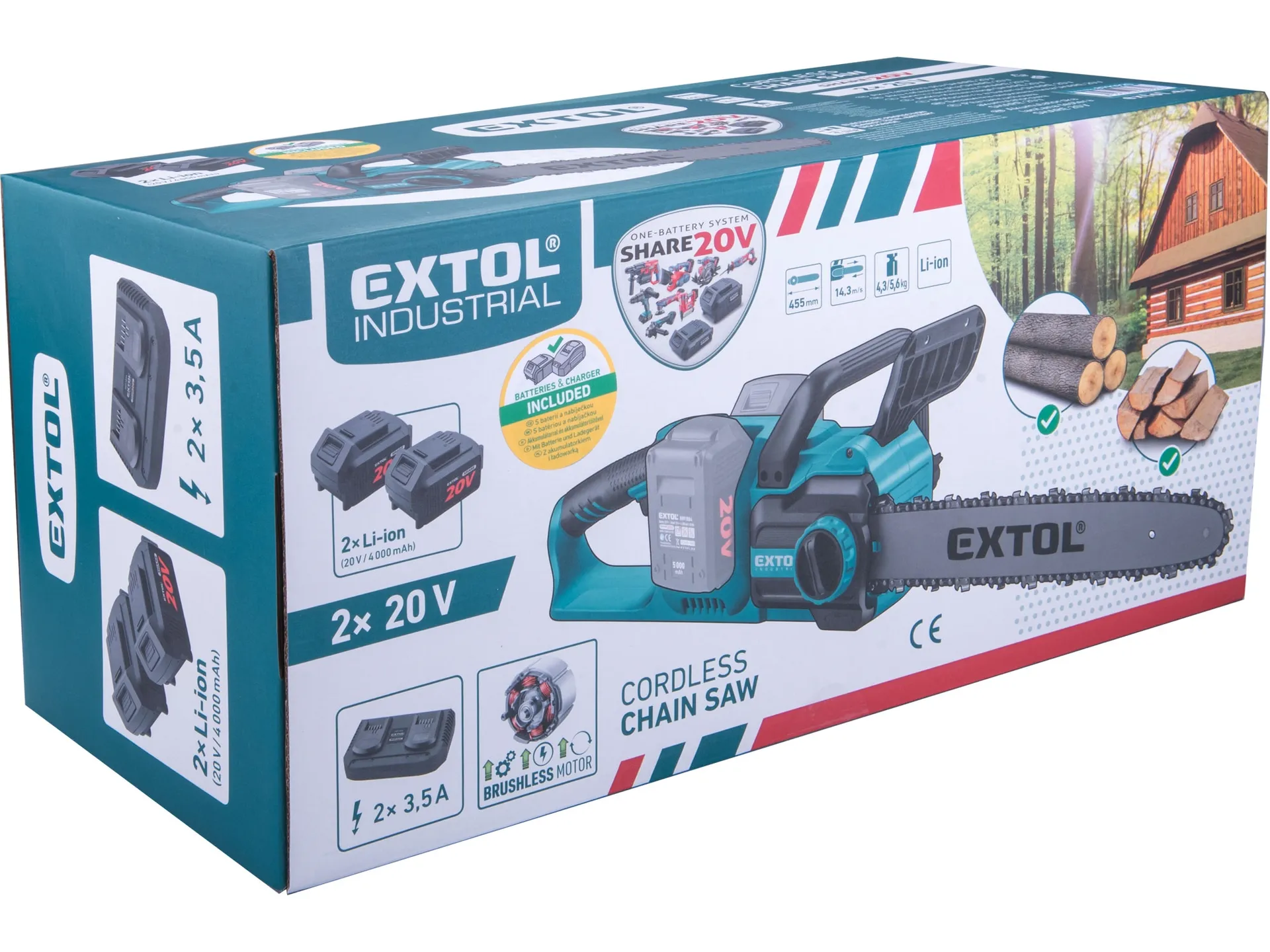 Pila řetězová aku share20v, 40cm, brushless, 2x4ah EXTOL INDUSTRIAL 8791920