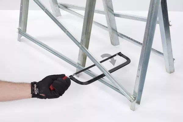 - Doplňující parametr: kovový rám pilky s rukojetí z ABS plastu potaženou TPR pryží, hliníkový kosořez 135x47x23mm s úhly řezu 45°a 90°