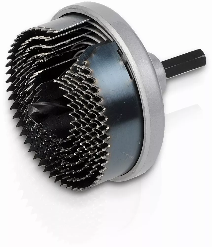 - ocelolitiny, šedé litiny, konstrukční ocelilegovaného a nelegovaného hliníku, bronzu, mědiPVC, plexisklasádrokartonu a dřevaInformace o použití:Pro použití ve stojanových vrtačkách, ručních vrtačkách a vrtacích kladivech (vypněte příklep)maximální hloubka řezu pro všechny velikosti 38 mmkvalita řezu závisí na správných otáčkách a správném chlazení (dodržujte návod k použití)při řezání kovů byste měli používat vysoce kvalitní řezný olej (s výjimkou litiny)pro zabránění přehřívání pily by se měly vznikající piliny a špony co nejčastěji odstraňovatděrovka je ideální pro elektrikáře, topenáře a instalatéry, klempíře a zámečníky, dále ve strojírenství, výrobě přístrojů, nádrží a karoseriíKonstrukce odolná vůči zlomení se solidní upínací deskouvysoce výkonné ozubení z rychlořezné oceli v kvalitě M3speciálně legované ocelové tělo nástrojeozubení Vario Pitch pro rychlý postup vrtání