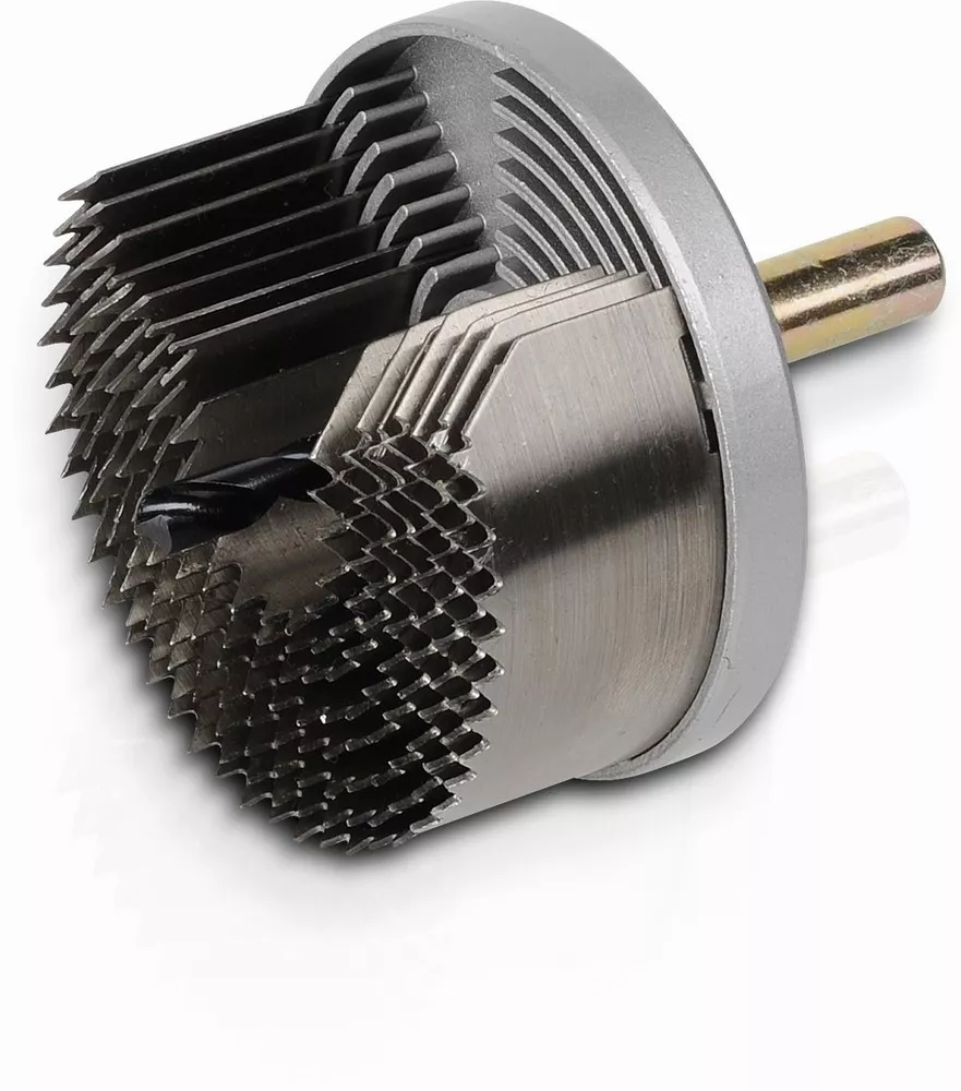 - ocelolitiny, šedé litiny, konstrukční ocelilegovaného a nelegovaného hliníku, bronzu, mědiPVC, plexisklasádrokartonu a dřevaInformace o použití:Pro použití ve stojanových vrtačkách, ručních vrtačkách a vrtacích kladivech (vypněte příklep)maximální hloubka řezu pro všechny velikosti 38 mmkvalita řezu závisí na správných otáčkách a správném chlazení (dodržujte návod k použití)při řezání kovů byste měli používat vysoce kvalitní řezný olej (s výjimkou litiny)pro zabránění přehřívání pily by se měly vznikající piliny a špony co nejčastěji odstraňovatděrovka je ideální pro elektrikáře, topenáře a instalatéry, klempíře a zámečníky, dále ve strojírenství, výrobě přístrojů, nádrží a karoseriíKonstrukce odolná vůči zlomení se solidní upínací deskouvysoce výkonné ozubení z rychlořezné oceli v kvalitě M3speciálně legované ocelové tělo nástrojeozubení Vario Pitch pro rychlý postup vrtání