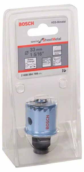 - Děrovka Special for Sheet Metal je vybavena jedinečným výměnným adaptérem Power Change firmy Bosch s nejrychlejším upínacím systémem na trhu.