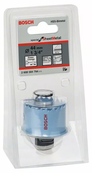 - Děrovka Special for Sheet Metal je vybavena jedinečným výměnným adaptérem Power Change firmy Bosch s nejrychlejším upínacím systémem na trhu.