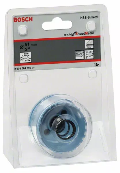 - Děrovka Special for Sheet Metal je vybavena jedinečným výměnným adaptérem Power Change firmy Bosch s nejrychlejším upínacím systémem na trhu.