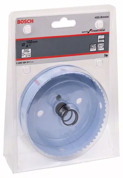 - Děrovka Special for Sheet Metal je vybavena jedinečným výměnným adaptérem Power Change firmy Bosch s nejrychlejším upínacím systémem na trhu.
