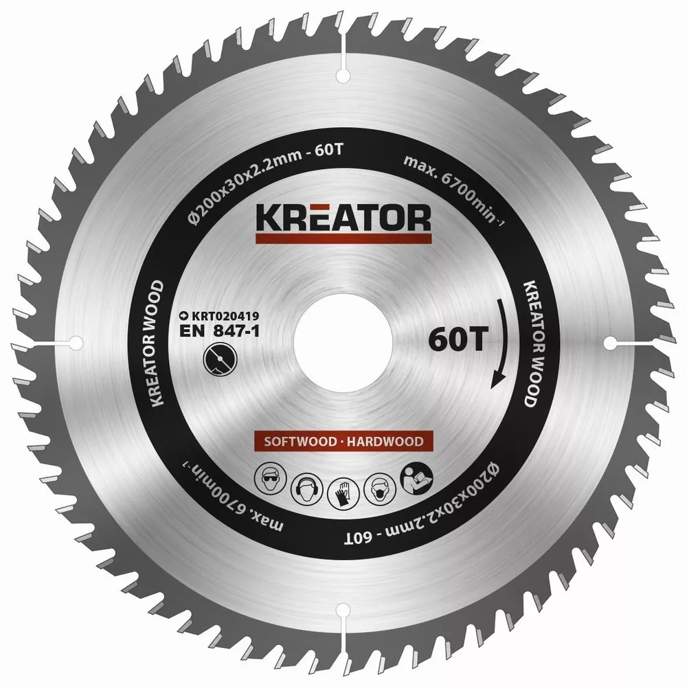 Pilový kotouč na dřevo 200mm, 60T Kreator KRT020419