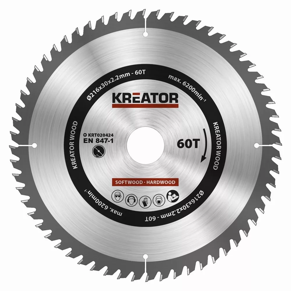 Pilový kotouč na dřevo 216mm, 60T Kreator KRT020424