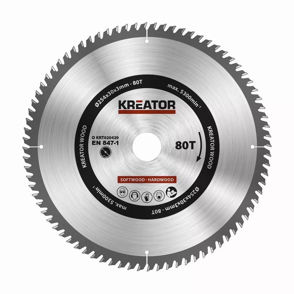 Pilový kotouč na dřevo 254mm, 80T Kreator KRT020429