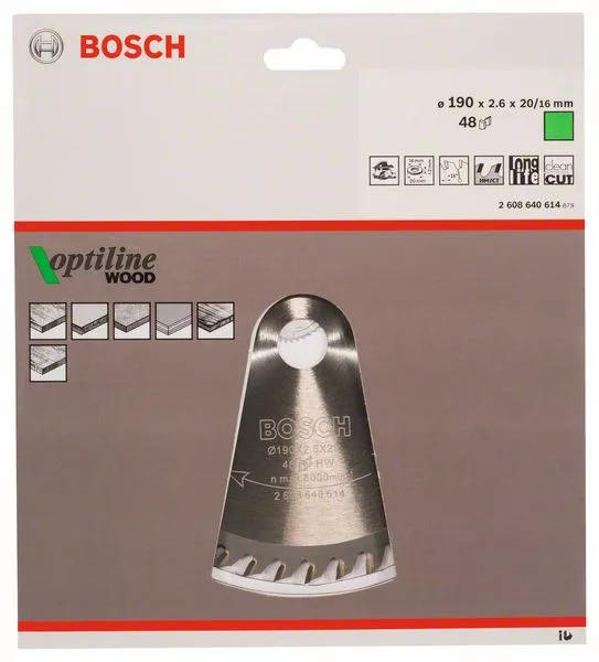 - V závislosti na počtu zubů je možné se všemi pilovými kotouči Optiline Wood, které se vyznačují geometrií zubu ATB (Alternate Top Bevel), dosahovat různých výsledků: je-li kotouč opatřen vysokým počtem zubů, vytváří čisté řezy, malý počet zubů pak zaručuje solidní a efektivní řezy.