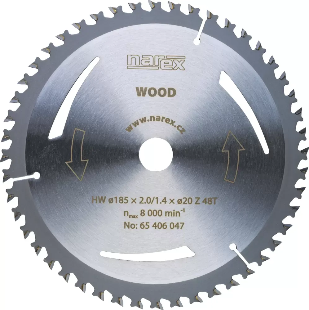 Nové pilové kotouče Narex WOOD jsou určeny pro podélné řezy do veškerých dřevěných materiálů. Úzké karbidové zuby o šířce 2,0 mm a tenké tělo o tloušťce 1,4 mm snižují tření a odpor materiálu a zvyšují řezný výkon, díky čemuž jsou tyto pilové kotouče velmi efektivní především pro akumulátorové kotoučové pily. Konstrukce kotoučů pozitivně ovlivňuje provozní dobu a celkovou životnost akumulátoru. Pilové kotouče Narex WOOD je možné efektivně použít i pro elektrické kotoučové pily.