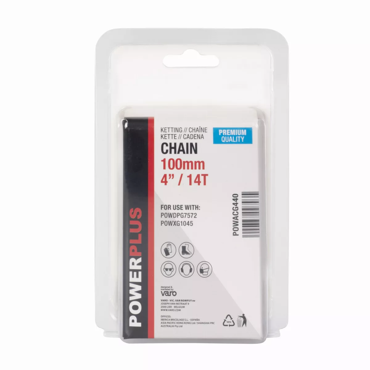 - Řetěz je kompatibilní s řetězovými pilami Powerplus POWDPG7572 a POWXG1045.