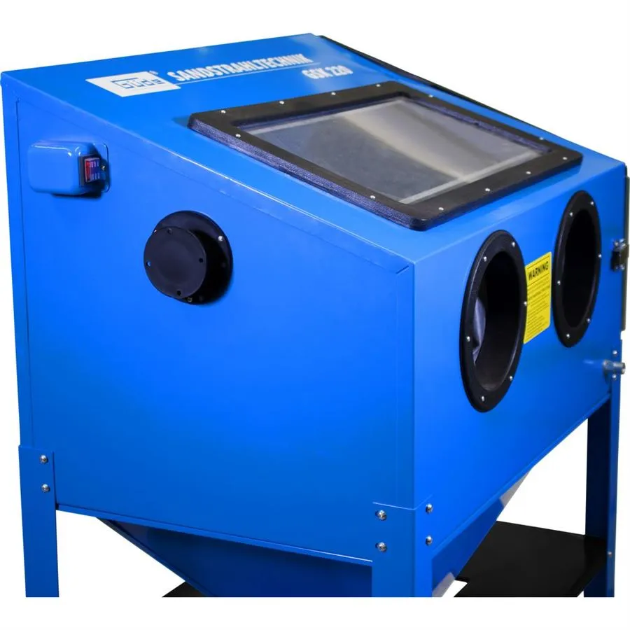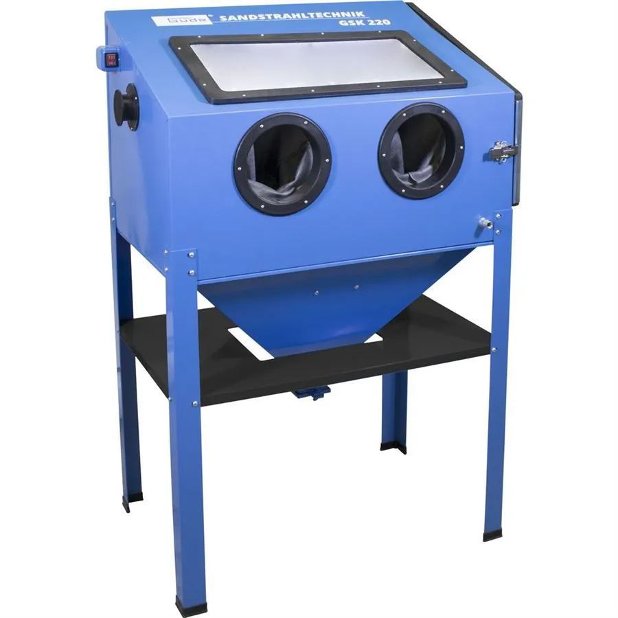 - Pískovací box GÜDE, určený k čištění nebo úpravám povrchu menších (středně velkých) předmětů proudem abrazivního materiálu. Vybavení - funkce• objem 220 litrů• pískovací box s vnitřním osvětlením• pískovací pistole s keramickou tryskou• velké pracovní okno (plexisklo)• integrované pracovní rukavice• odkládací mřížka na obrobky 838 x 596 x 628 mm• průduch pro odvod vzduchu• vzduchová přípojka s vnitřním závitem 1/4" • boční dvířka s petlicemi• uzamykatelná šachta na tryskací materiál• gumové nožky Příslušenství: sada 4 keramických trysek (Ø 4-5-6-7 mm), ochranné fólie (5), 12 V síťový adaptér, těsnicí a teflonová páska.