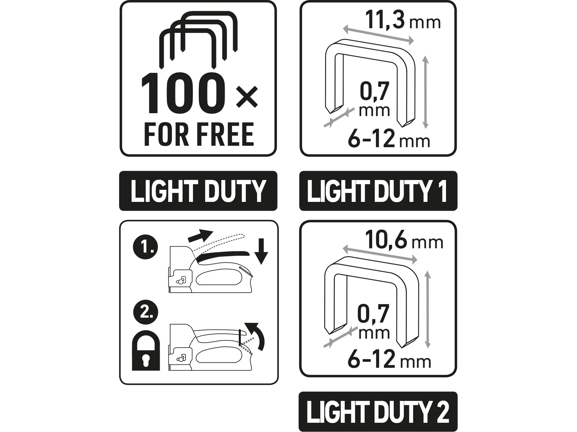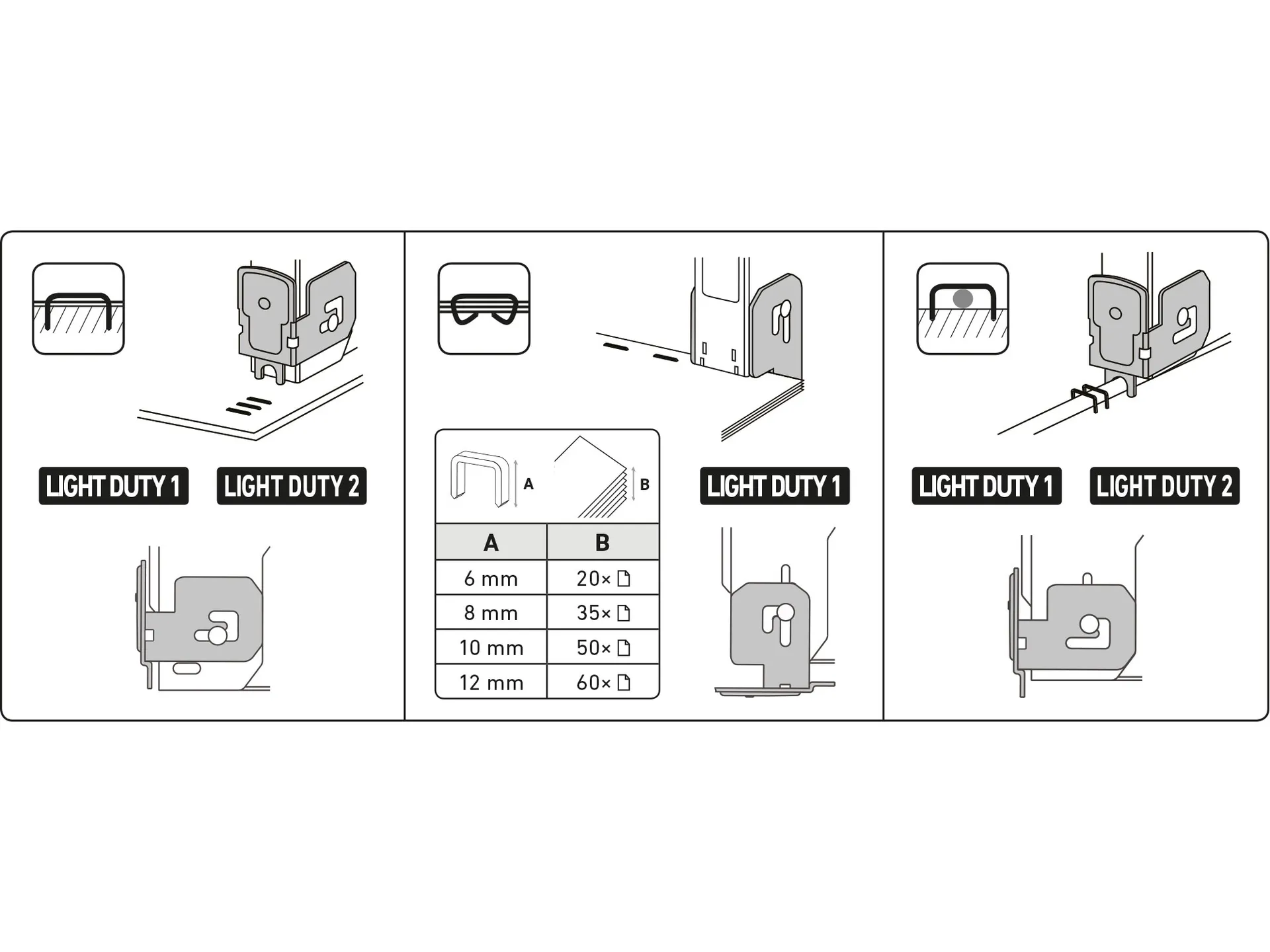 - Doplňující parametr: vhodné pro 2 typy spon: výška 6-12mm, rozteč 10,6x tl.0,7mm a rozteč 11,3x tl.0,7mm