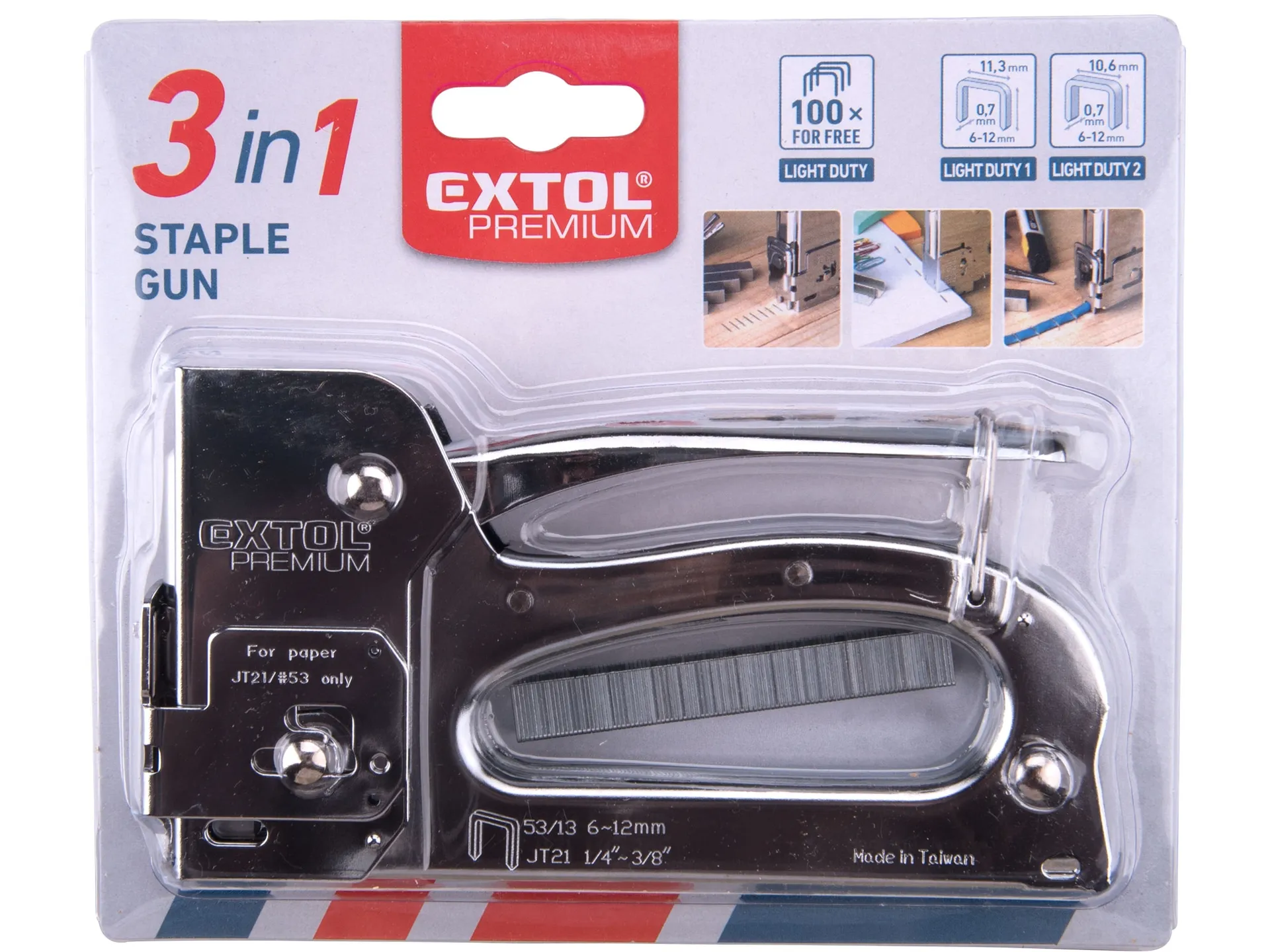 Pistole sešívací/sponkovací 3funkční, 6-12mm, včetně 100ks spon EXTOL PREMIUM 8851105
