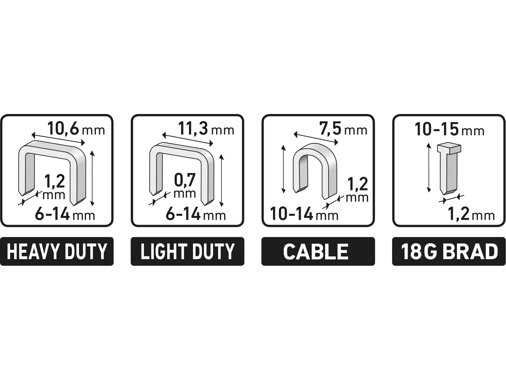 - Doplňující parametr: možnost nastavení síly úderu, vhodné pro 4 typy spon: výška 6-14mm, rozteč 10,6x tl.1,2mm+ rozteč 11,3x tl.0,75mm, kabelové spony výšky 10-14mm rozteč 7,6mm, hřebíky s hlavičkou do max. délky 15mm