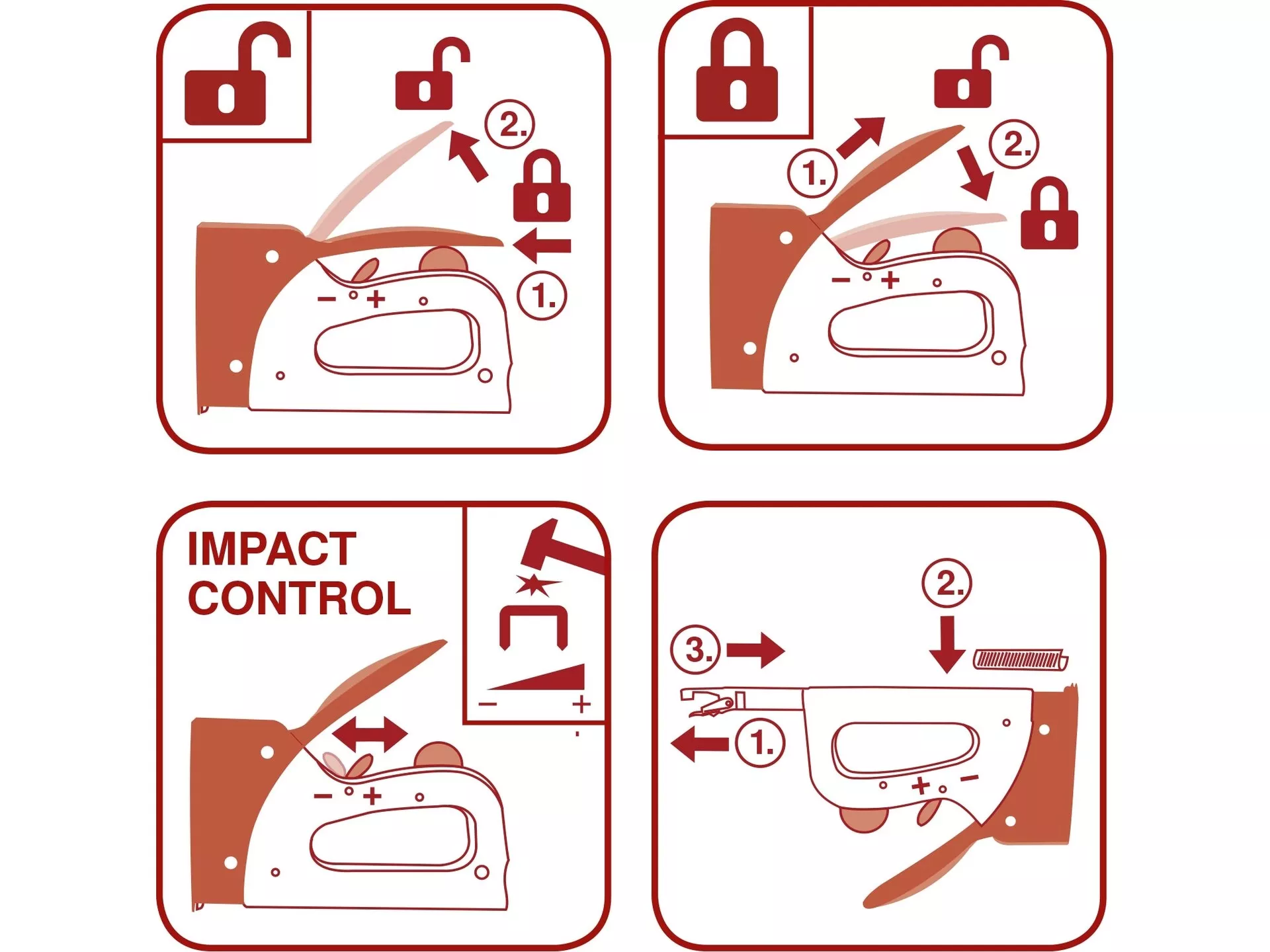 - Doplňující parametr: možnost nastavení síly úderu, vhodné pro spony: výška 6-16mm, rozteč 11,3x tl.0,7mm, hřebíky s hlavičkou do max.délky16mm