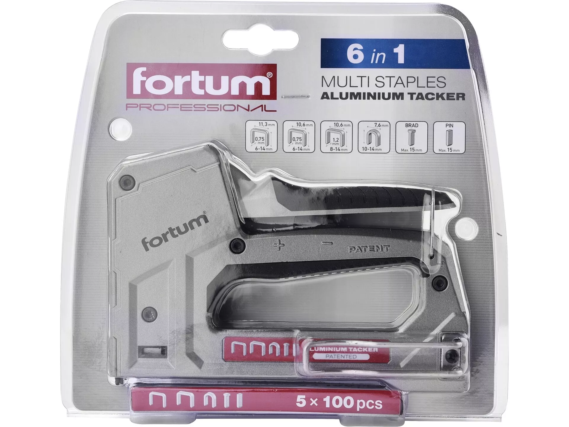 Pistole sponkovací 6funkční, 6-14mm včetně 100ks spon FORTUM 4770704