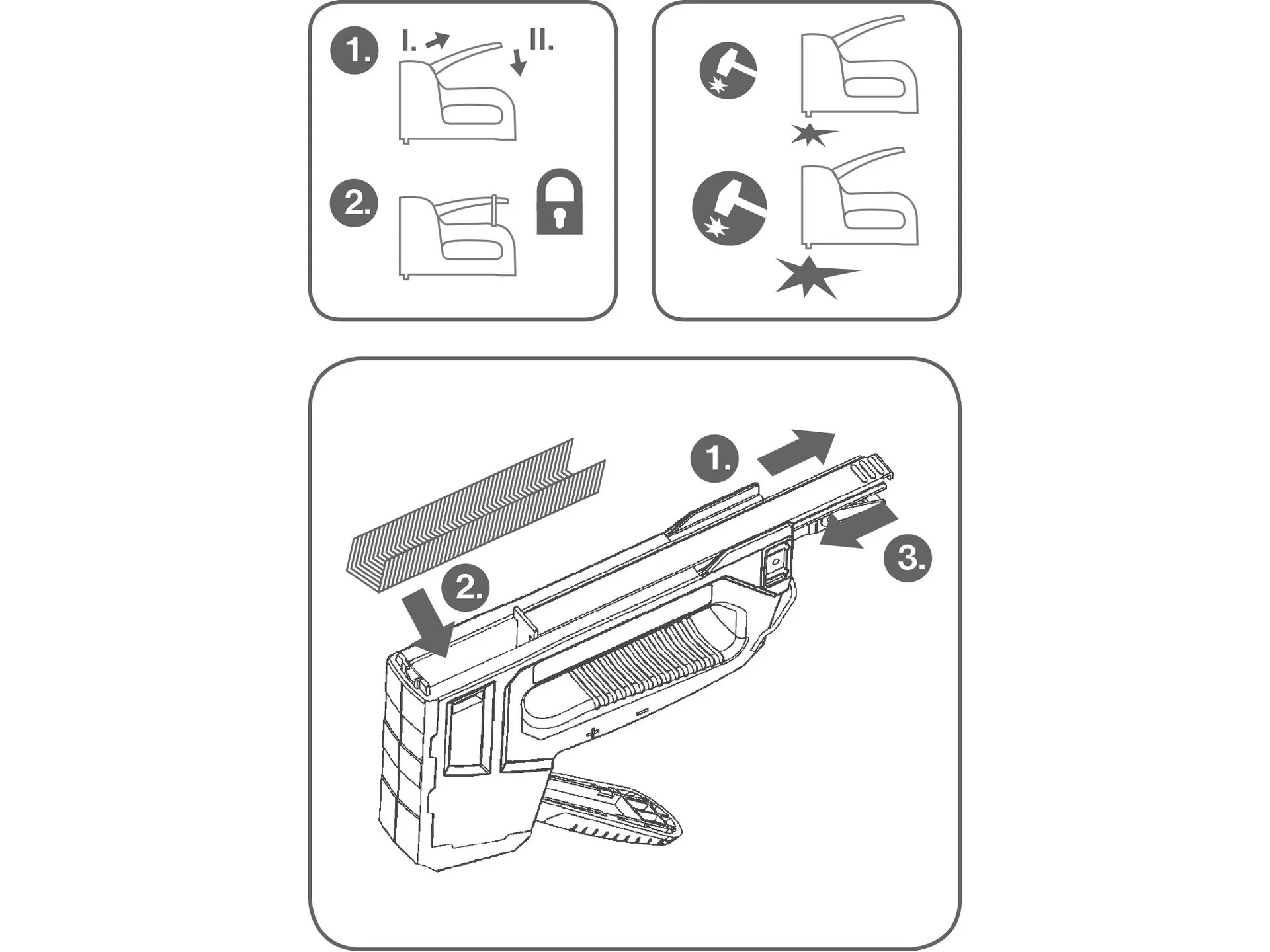 - Doplňující parametr: vhodné pro 6 typů spon: výška 6-14mm, rozteč 10,6x tl.1,2mm+ rozteč 10,6x tl.0,75mm+rozteč 11,3x tl.0,75mm, kabelové spony výšky 10-14mm rozteč 7,6mm, hřebíky s hlavičkou i bez hlavičky do max. délky 15mm