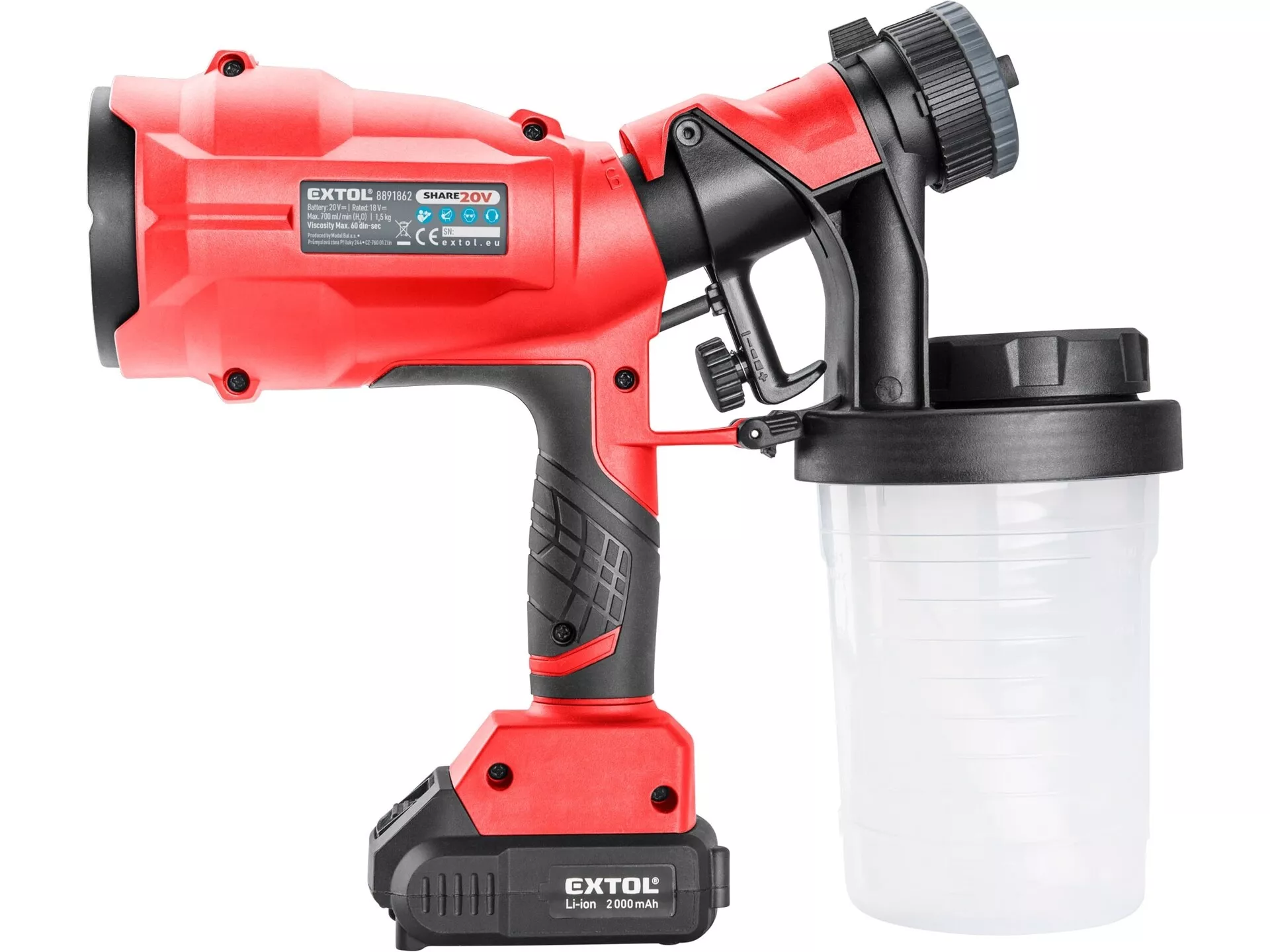 Pistole stříkací hvlp aku share20v, 20v li-ion, 2000mah EXTOL PREMIUM 8891862