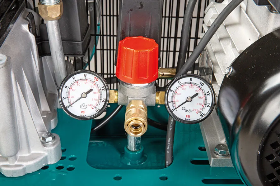 - Tlaková nádoba s pojistným ventilem, manometrem a ventilem pro vypouštění kondenzátu