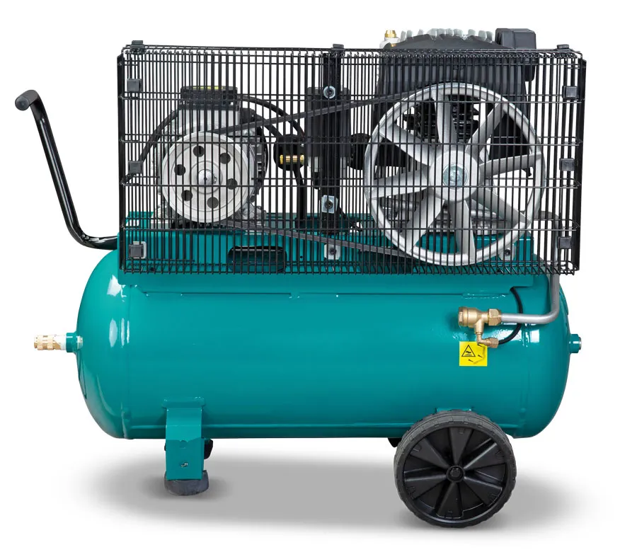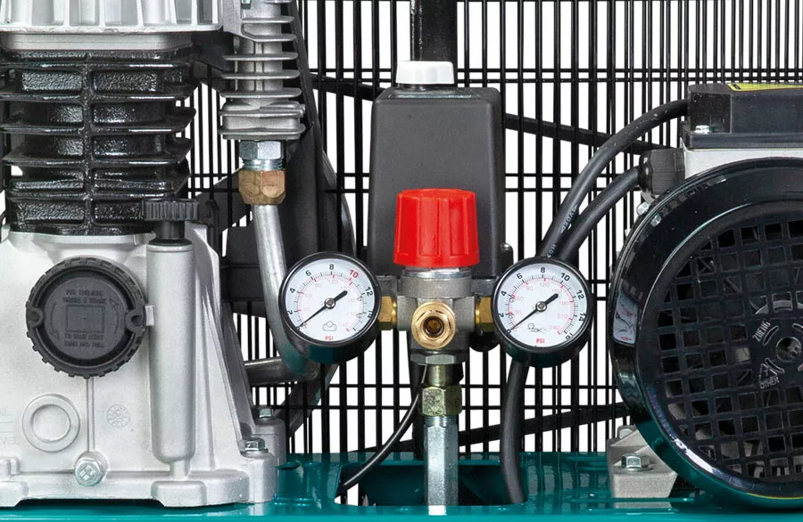 - Tlaková nádoba s pojistným ventilem, manometrem a ventilem pro vypouštění kondenzátu