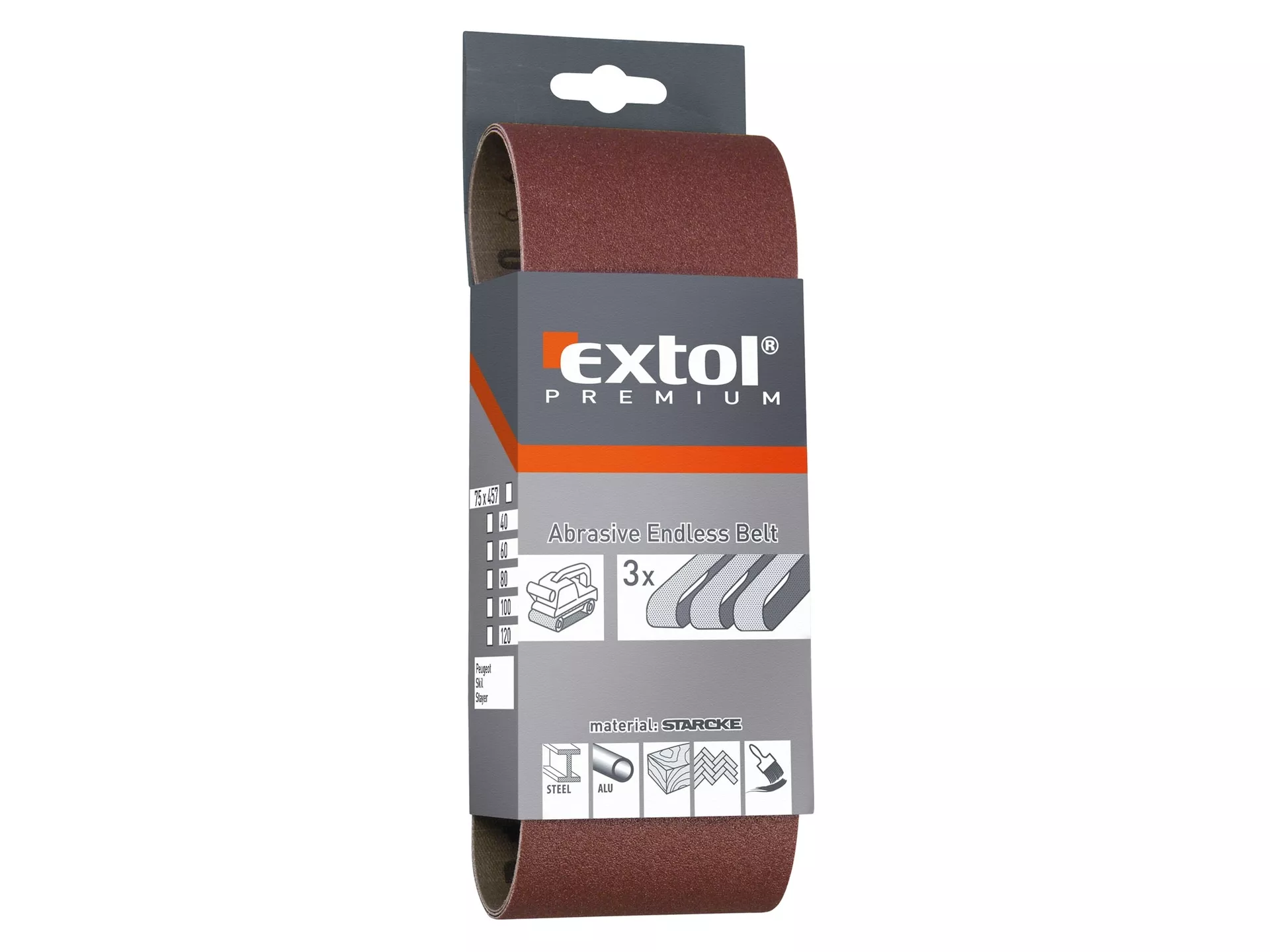 Plátna brusná nekonečný pás, bal. 3ks, 75x457mm, p40 EXTOL PREMIUM 8803504
