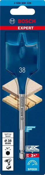 - Plochý frézovací vrták do dřeva Bosch EXPERT Self Cut Speed s jistotou vrtá do každého měkkého dřeva a nabízí efektivitu a pohodlí řemeslníkům, kteří potřebují vrtat otvory pro kabeláž, potrubí a další stavební či montážní prvky.