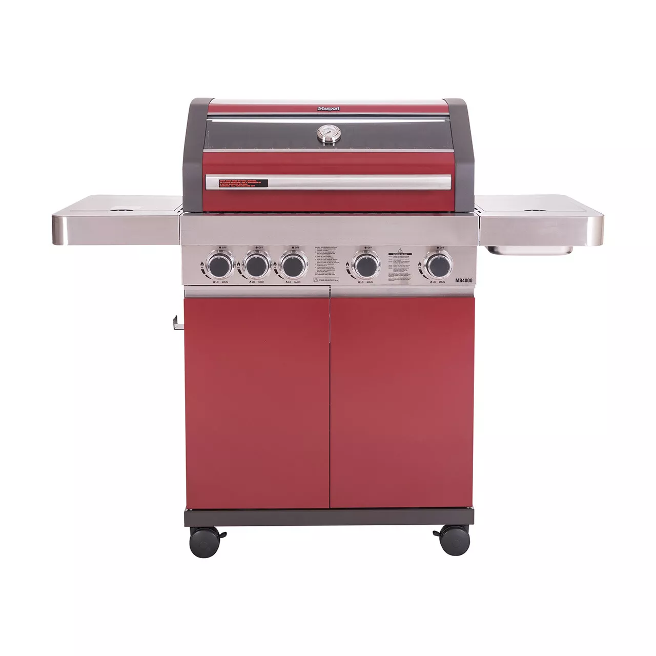 - Plynový gril Masport BBQ Maestro červený je přeborníkem v zahradním grilování. 4 hlavní hořáky doplňuje 1 boční pro možnost vaření nebo ohřevu např. omáček.