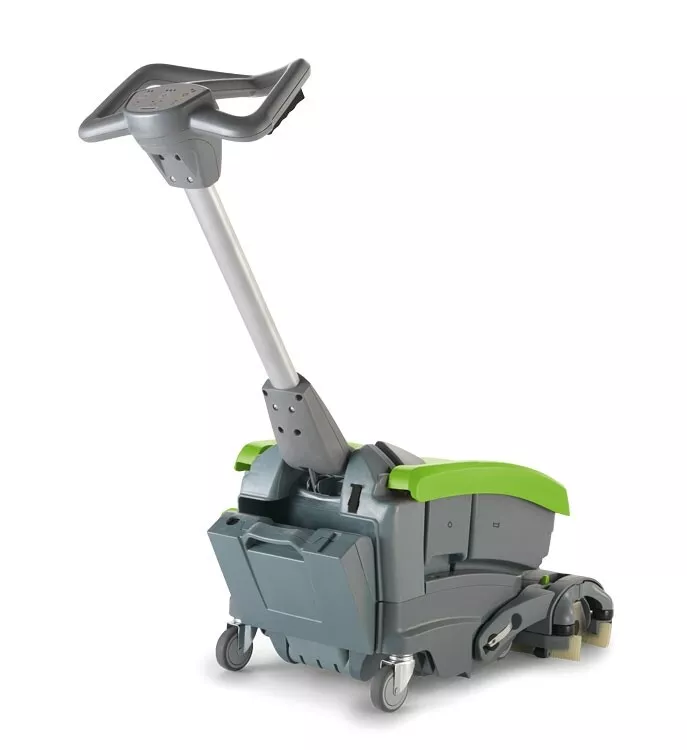 - Obratnější než jiné mycí stroje: Pohodlné, nepřetržité čištění v úzkých místech díky nádrži na 7,5 litru čisté vody, velmi kompaktním rozměrům, řídítkům a řiditelným zadním kolům