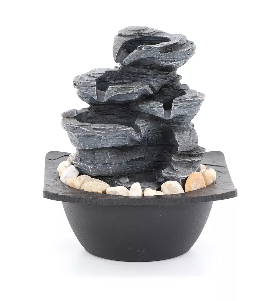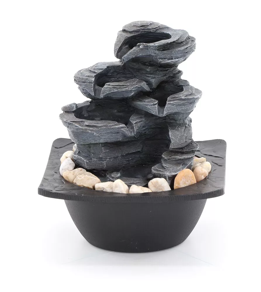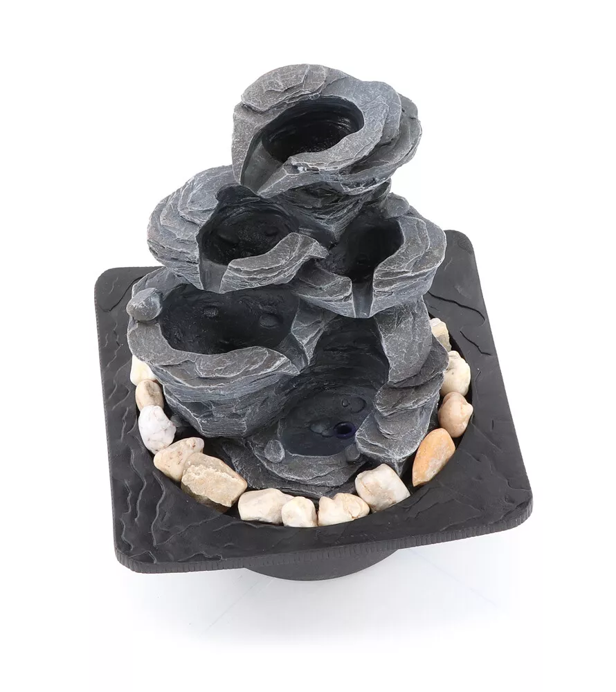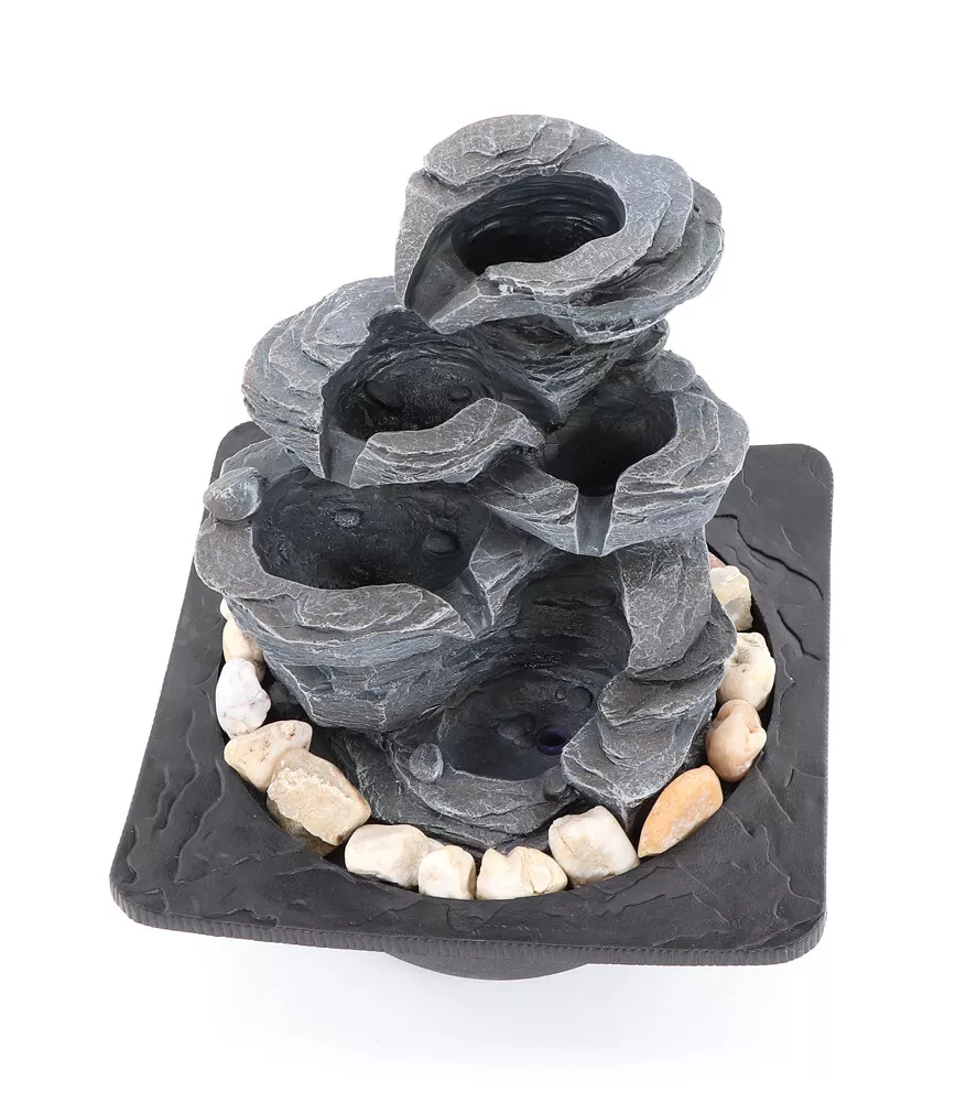 - Pokojová fontána vyobrazující přelévající se džbánky s LED osvětlením bude rozhodně příjemnou oázou klidu, pohody ve Vašem bytě.