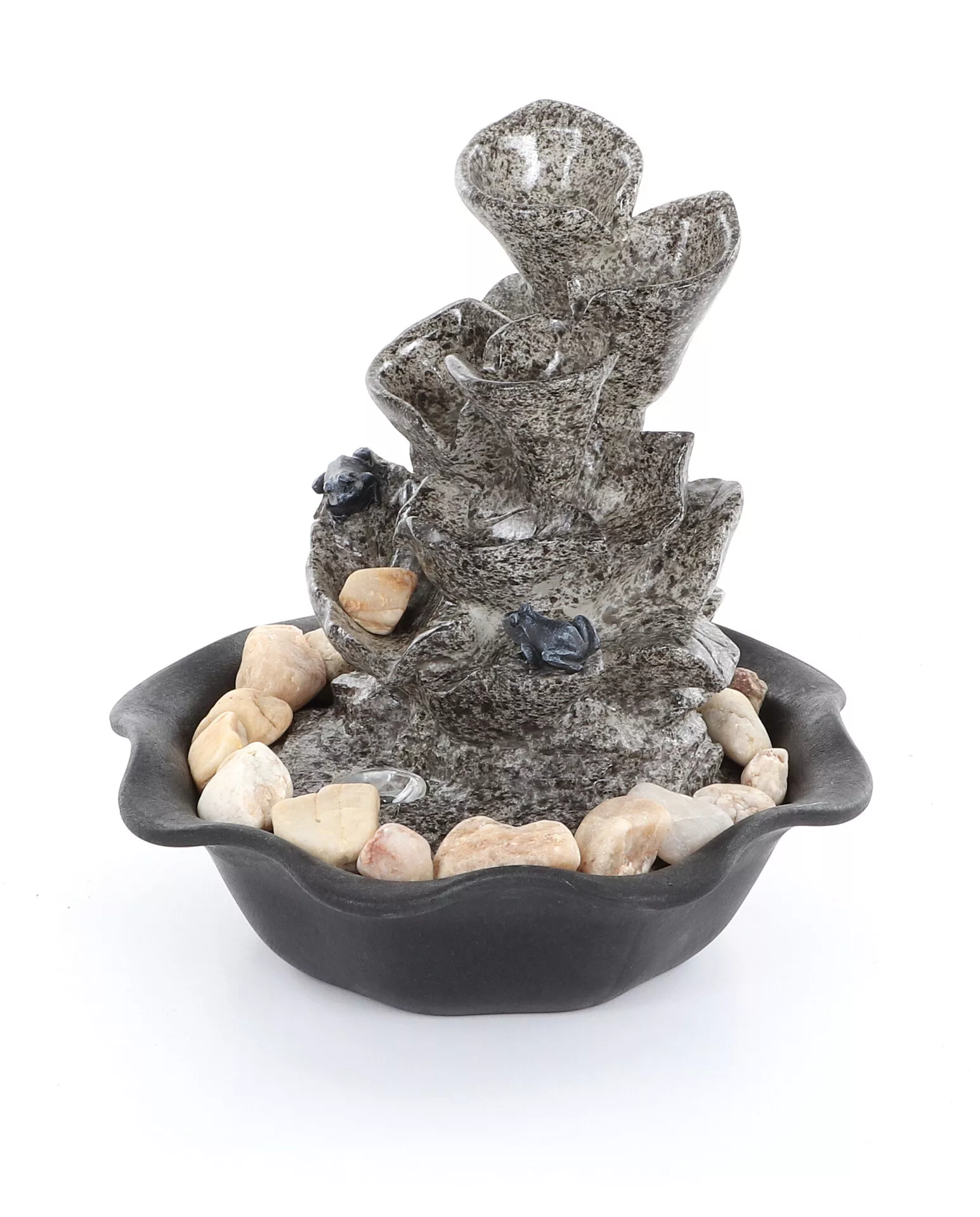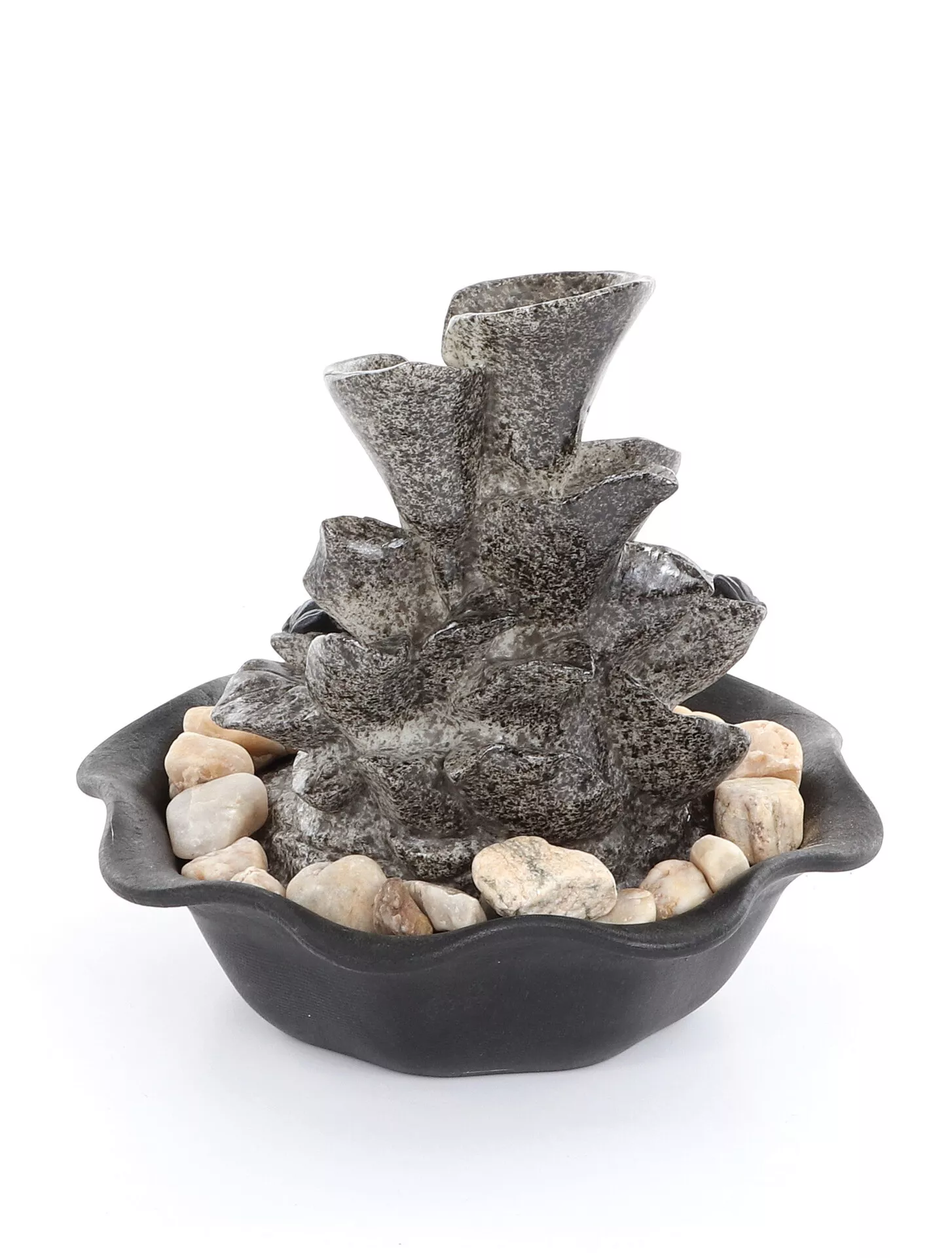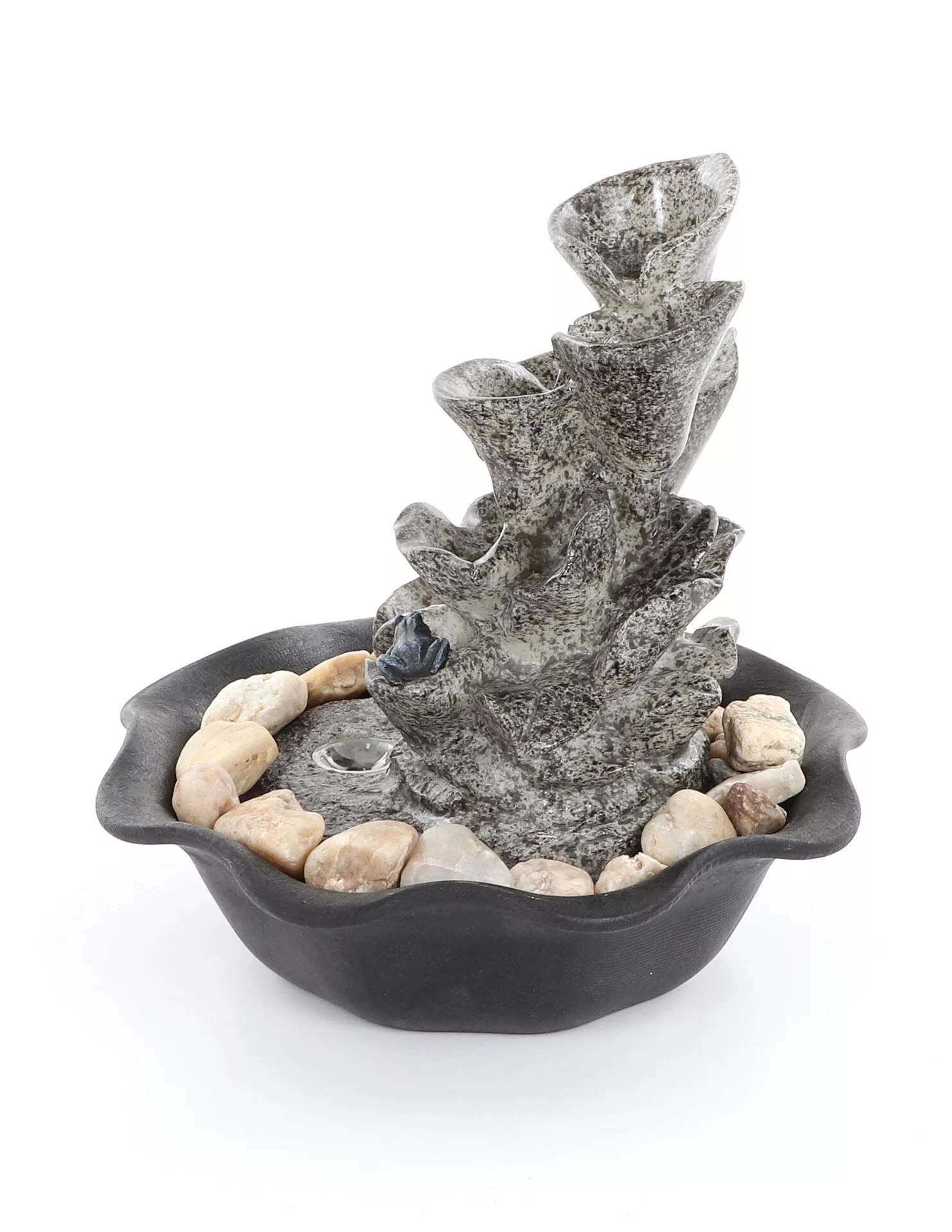 - Pokojová fontána je vybavena kvalitní a velmi tichou vodní pumpou. Voda stéká po jednotlivých květech, spodní studánka je prosvětlena LED osvětlením.