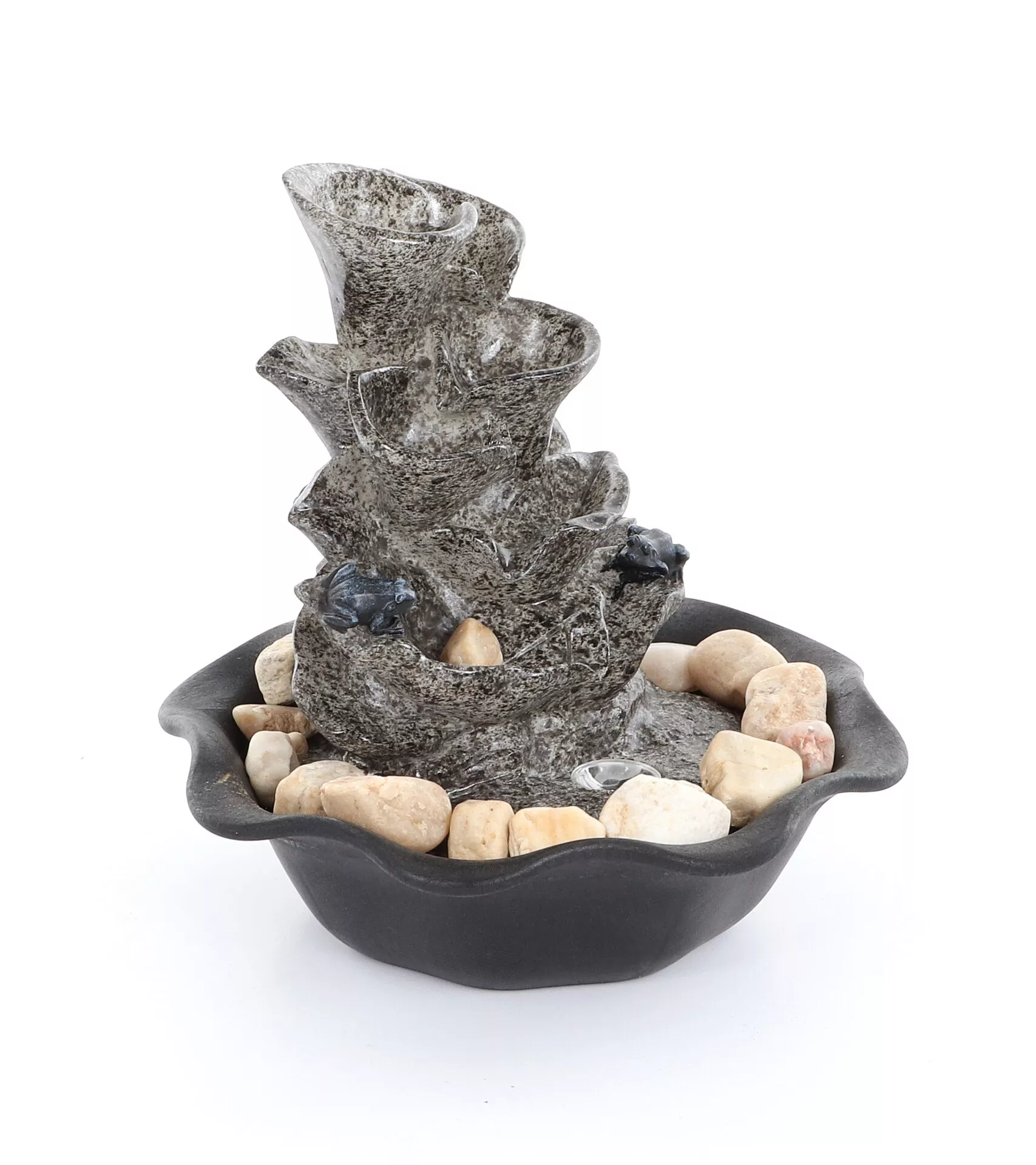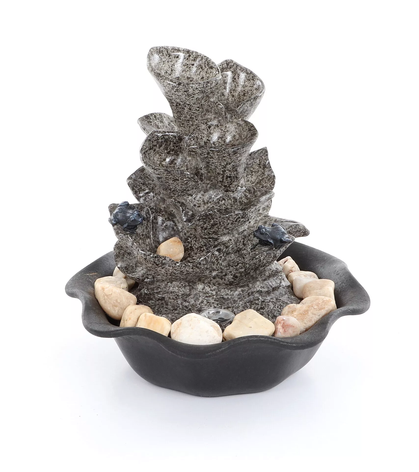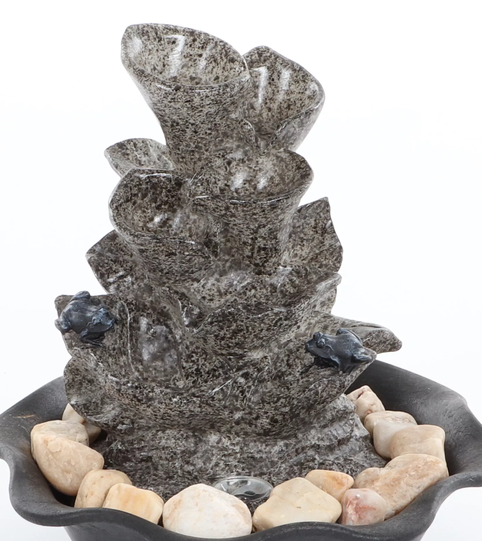 - Pokojová fontána je vybavena kvalitní a velmi tichou vodní pumpou. Voda stéká po jednotlivých květech, spodní studánka je prosvětlena LED osvětlením.