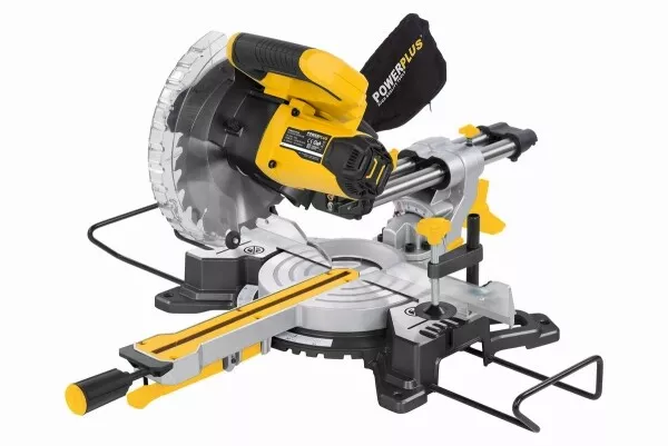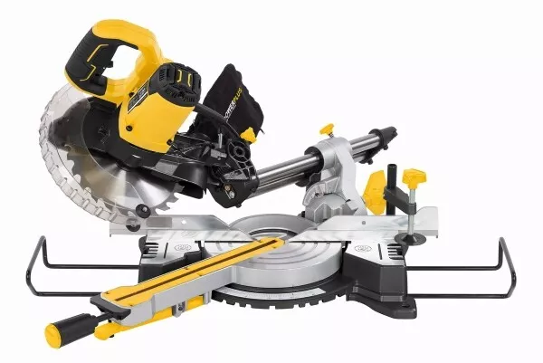 - Tato pokosová pila s potahem od společnosti Powerplus má pilový kotouč prům. 210 mm pro přímé řezy o 90 st a zkosení o 45 st ve dřevě.