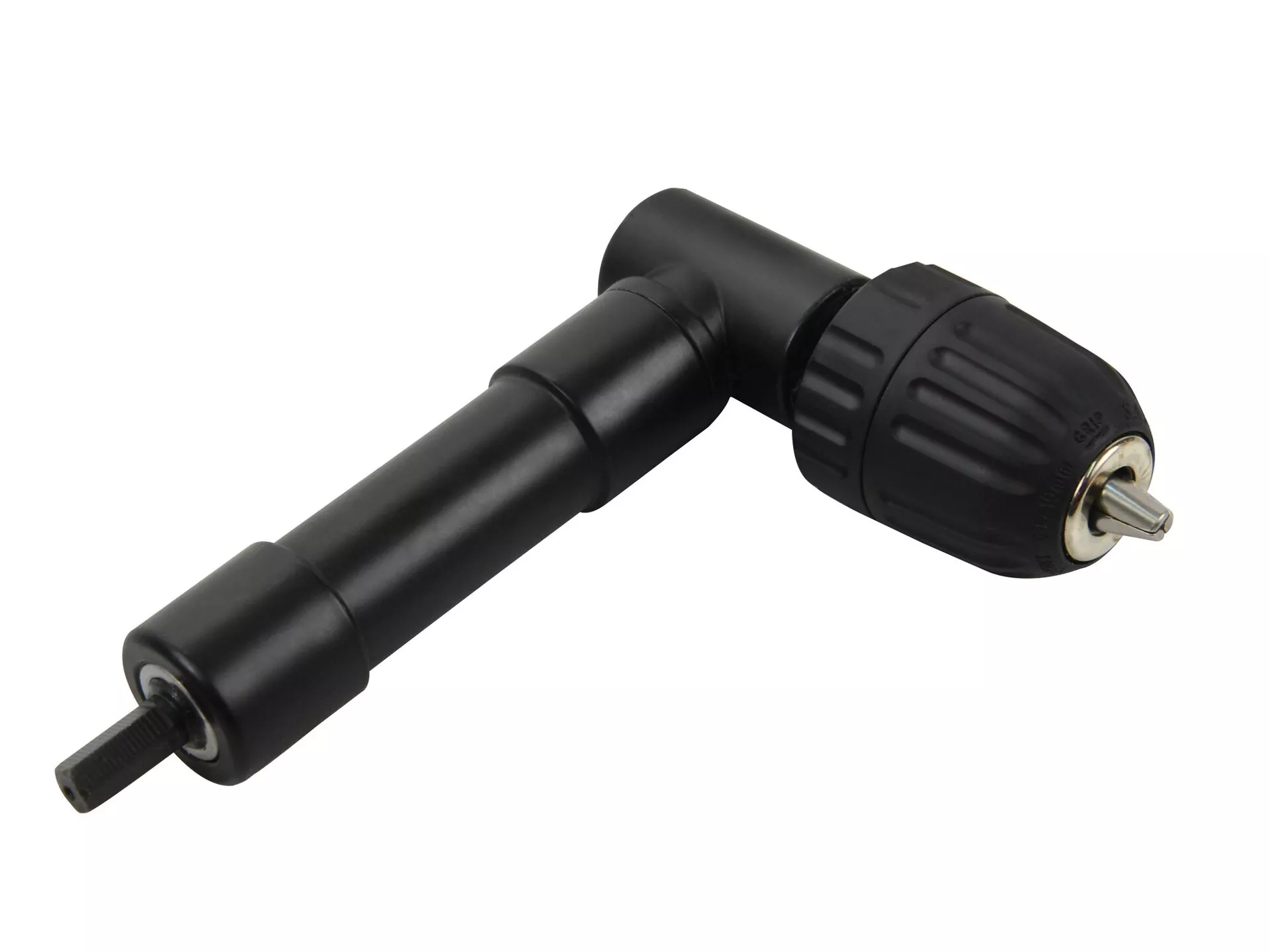 - Celokovový nástavec, jehož pomocí lze vrtat v méně přístupných místech, např. uvnitř skříněk a v rozích místností. Sklíčidlo umožňuje upnutí vrtáku až do průměru 10mm.