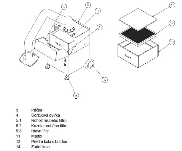 - Sací výkon (čistý vzduch): 1100 m³/h