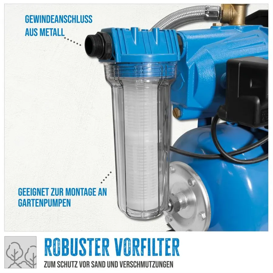 - Kompletní předsazený filtr s oboustrannou závitovou přípojkou 1“, určený k preventivní ochraně domácích vodáren před nasátím písku/pevných částic