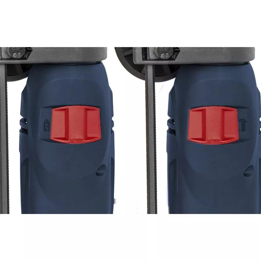 - Konstrukce: rychloupínací sklíčidlo, hloubkový doraz, ergonomicky tvarovaná rukojeť s měkkou tlumicí vložkou, otočné boční držadlo