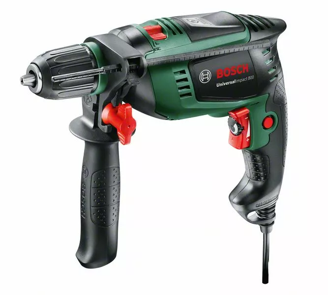 - Příklepová vrtačka UniversalImpact 800; Výkonná příklepová vrtačka s kontrolou zpětného rázu KickBack Control pro rozsáhlejší projekty; Kontrola zpětného rázu KickBack Control pro větší bezpečnost; Rychloupínací sklíčidlo s Autolock a jednou objímkou pro rychlou a jednoduchou výměnu nástrojů; Předvolba otáček a konstantní rychlost Bosch pro efektivní vrtání; Vrtání bez námahy do zdiva až do 14 mm a do dřeva až do 30 mm; Přídavná rukojeť (2 609 256 D93); Hloubkový doraz (2 603 001 019); Plastový kufr