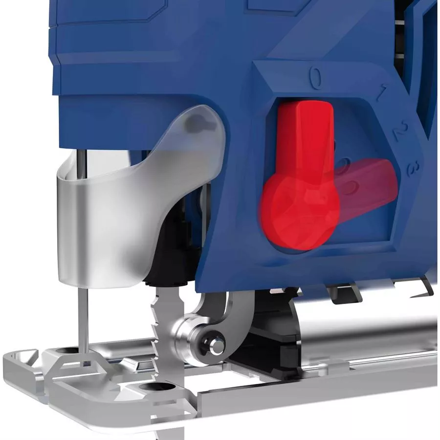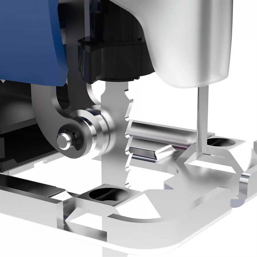 - Přímočará pila s plynulou regulací otáček, se systémem rychlé výměny pilového listu bez použití nářadí. Ergonomicky tvarovaná rukojeť s měkkým úchopem, aretační vypínač pro nepřetržitý provoz. Přestavitelná základna do 45° pro precizní šikmé řezy, 4-stupňový kyvadlový zdvih (3+0) pro nejlepší řezný výkon. Přípojka na externí odsávací systém pro bezprašnou práci. Průhledná ochrana pilového listu, svorka na paralelní doraz. Včetně pilového listu pro řezání dřeva, imbusový klíč, paralelní doraz s pravítkem.