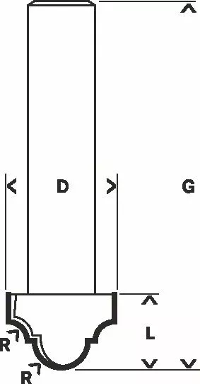 Profilová fréza, 8 mm, R1 2,4 mm, D 12,7 mm, L 12,4 mm, G 46 mm BOSCH 2608628398