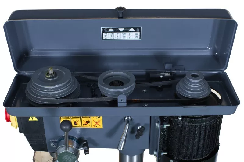 - Pomocí klínových řemenů lze zvolit až 12 rychlostí otáčení vřetene