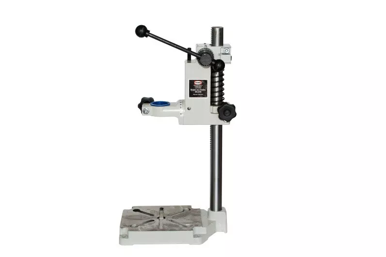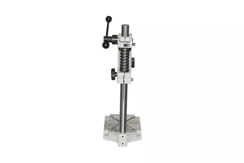 - Doplňující parametr: rozsah pojezdu páky 0-60mm, celková výška stojanu 400mm, rozměr základny 156x156mm, max. vzdálenost mezi upínací objímkou a základnou je 310mm, součástí dodávky jsou i 3 kusy vymezovacích vložek k fixaci vrtaček s upínací objímkou o průměrech 43-39-25mm