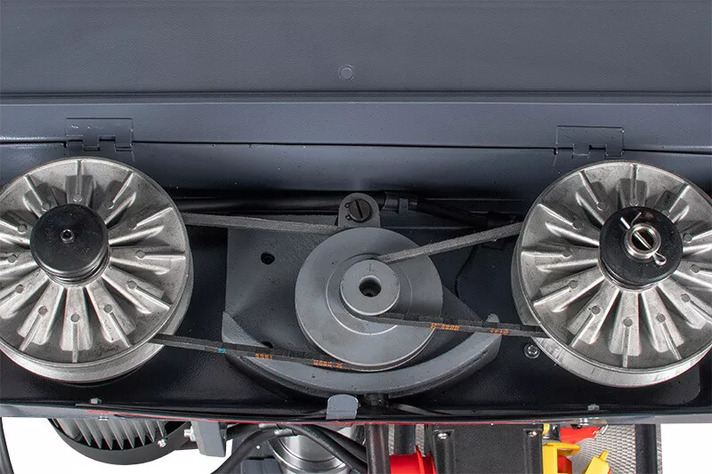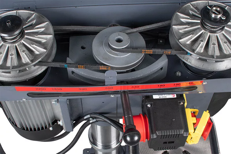 - Pomocí klínových řemenů lze zvolit až 12 rychlostí otáčení vřetene