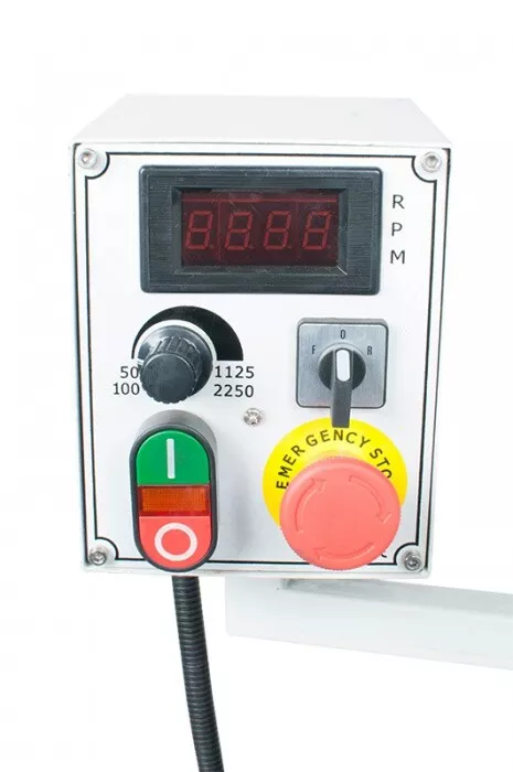 - Je vybavena digitálním odměřováním posuvu pinoly - druhý displej zobrazuje počet otáček vřetene