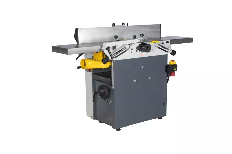 - Kompaktní truhlářský stroj s protahem tloušťky až 220 mm Ideální pro přesné hoblování desek, pásů a nosníků Díky volitelně (na objednávku) dostupnému dlabacímu zařízení lze provádět další drážkové a vrtací práce Tato hoblovka (srovnávací a tloušťkovací frézka) je určena k obrábění měkkého i tvrdého dřeva Kvalitní a precizně obrobené litinové stoly a kryt nožového vřetena Tuhá litinová konstrukce stroje a výstupní otáčky válce se čtyřmi hoblovacími noži zajišťují kvalitně obrobený povrch Výhodou je šíře hoblování 310 mm a použití protahu o výšce až 220 mm se strojním posuvem Na tělo stroje lze volitelně připojit dlabačku Integrovaný sklopný kryt na odsávání třísek - průměr připojení 100 mm Sklopné hoblovací stoly pro rychlý přechod na tloušťkování Kombinace spínačů s motorovou brzdou Stabilní boční vodicí pravítko s hranolovým vedením, lze nastavit od 90° do 45° Oba srovnávací stoly s jemným nastavením a úpravou pohlcující hluk Bezúdržbová hřídel se 4 hoblovacími noži v kvalitě HSS Podávání obrobku lze během hoblování vypnout Bezpečnostní kryt hoblovacího hřídele podle normy CE nabízí maximální ochranu při práci Silný stůl na centrálním vodicím sloupu a podpěry pro čisté hoblování Nejlepší hoblovací výsledky díky hoblovacím stolům ze šedé litiny, které se nekroutíMožnost otáčení válce po zastavení stroje pro snadnou výměnu nožů