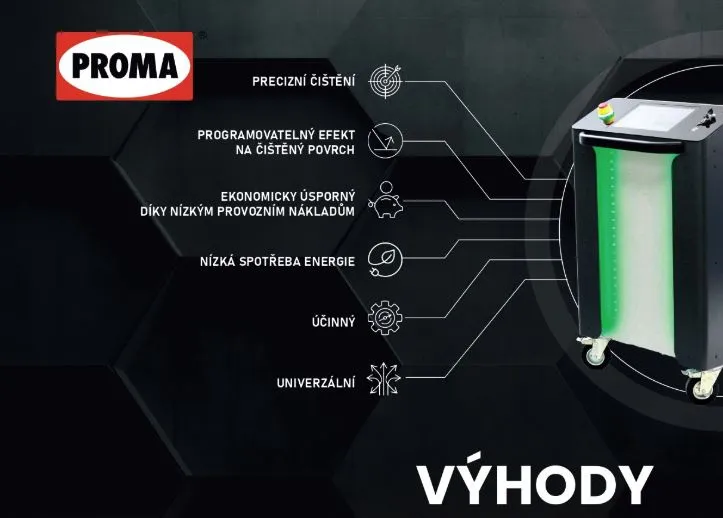 - Díky svému všestrannému použití jsou lasery PROMA široce používány v různých průmyslových odvětvích a zajišťuje efektivní a přesné čištění povrchů.