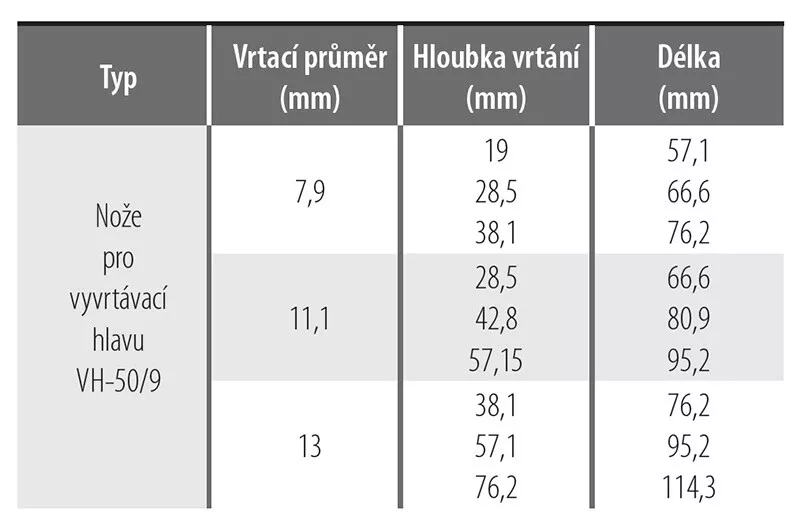 - Nože pro vyvrtávací hlavu VH-50 (sada 9 ks)